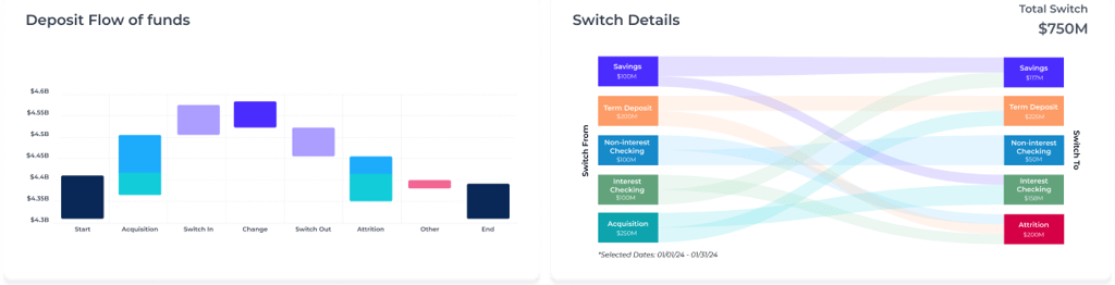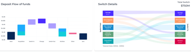 #1 Timely insights: Our main two clients' main feedback centered around seeing more details about their customers' money movement. These calculations are particularly relevant during the early part of the year when they see increased activity and fluctuations in deposit transactions, so we added a Switch Details view to give them more ways to drill down into this information.