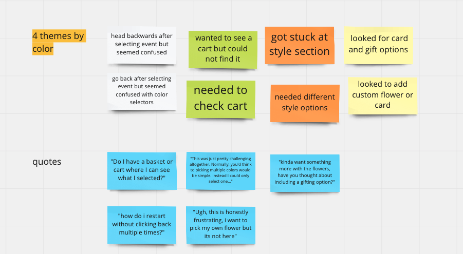 Secondary/Competitive analysis: I took an in-depth look at several online flower retailers such as ProFlowers, et al, to better understand the experience and features these competitors provide.